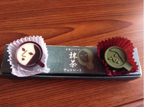 お茶のおともにいただいた。 よーじやさんの抹茶チョコレートとカプチーノチョコレート。